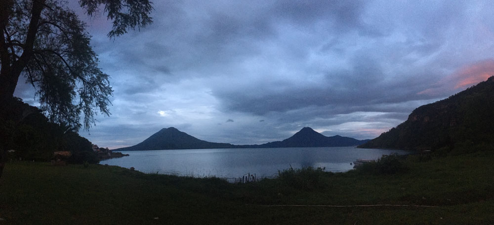 Once released from the Guatemalen border, we drove all day through the mountains and found a campsite on the shore of lake Atitlan. It rained hard, and thunder shook above us, but the tent remained… fairly dry. Dawn over the lake was nothing short of transcendent. No words could describe it.